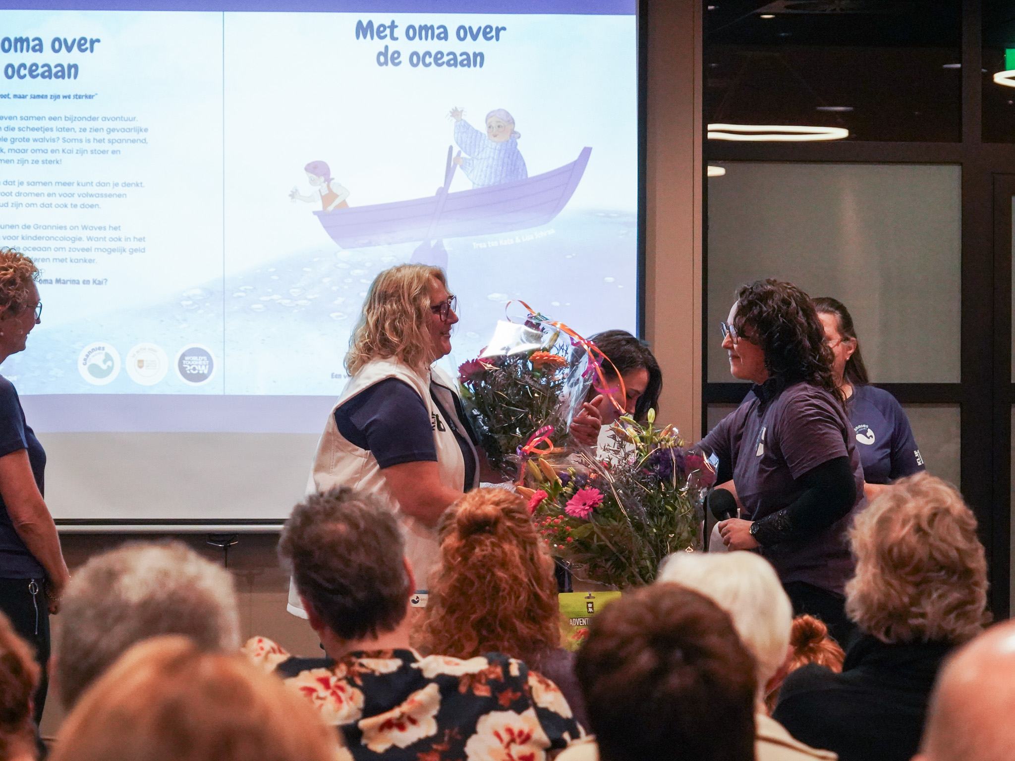 Met oma over de oceaan is een prentenboek voor kleine én grote dromers. Het vertelt het verhaal van Kai en haar oma Marina, die samen de oceaan trotseren. Over moed, vertrouwen en samen sterker zijn. De opbrengst van dit mooie boek draagt bij aan ons doel: zoveel mogelijk geld ophalen voor het Prinses Máxima Centrum voor kinderoncologie.